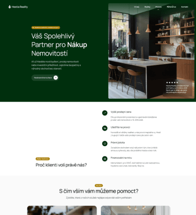 Web pro realitní kancelář, který podporuje důvěru a první kontakt s klientem.